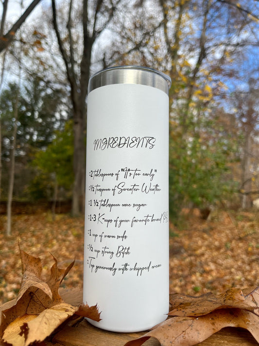 Custom engraved fall pumpkin spiced themed 20oz tumbler coffee cup
